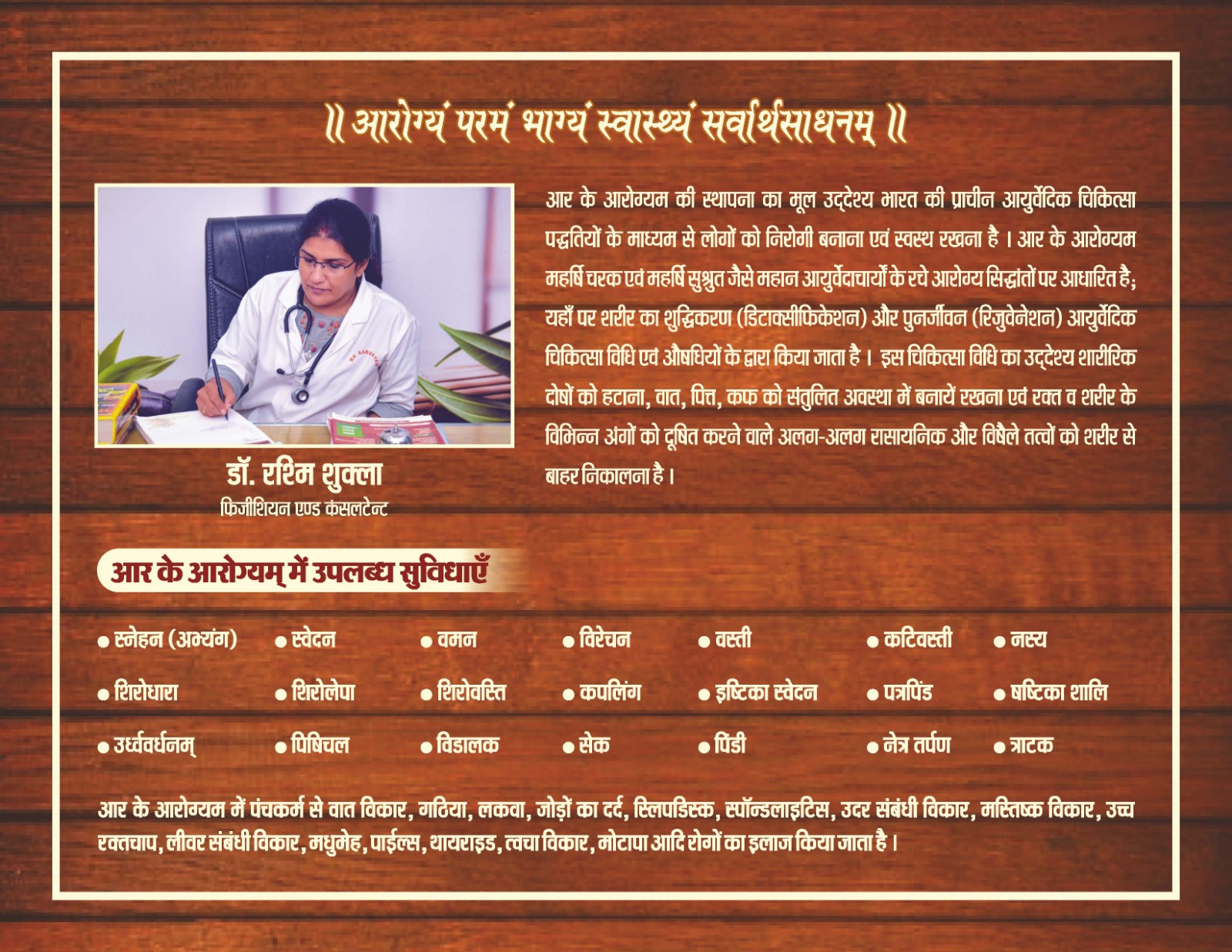 ntegrates therapy, herbal treatment, diet, yoga, and lifestyle education for sustained healing.